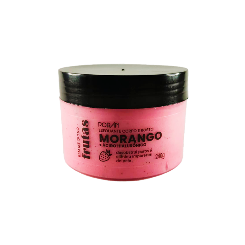 O Esfoliante de Morango + Acido Hialuronico Póran promove a renovação celular combatendo o envelhecimento precoce. Com uma ação rica em antioxidantes desobstrui poros, elimina as impurezas e promove a renovação celular. Aliado ao Ácido Hialurónico sua fórmula combate o ressecamento e preserva a hidratação natural da pele. Excelente para evitar acne, cravos e foliculites.