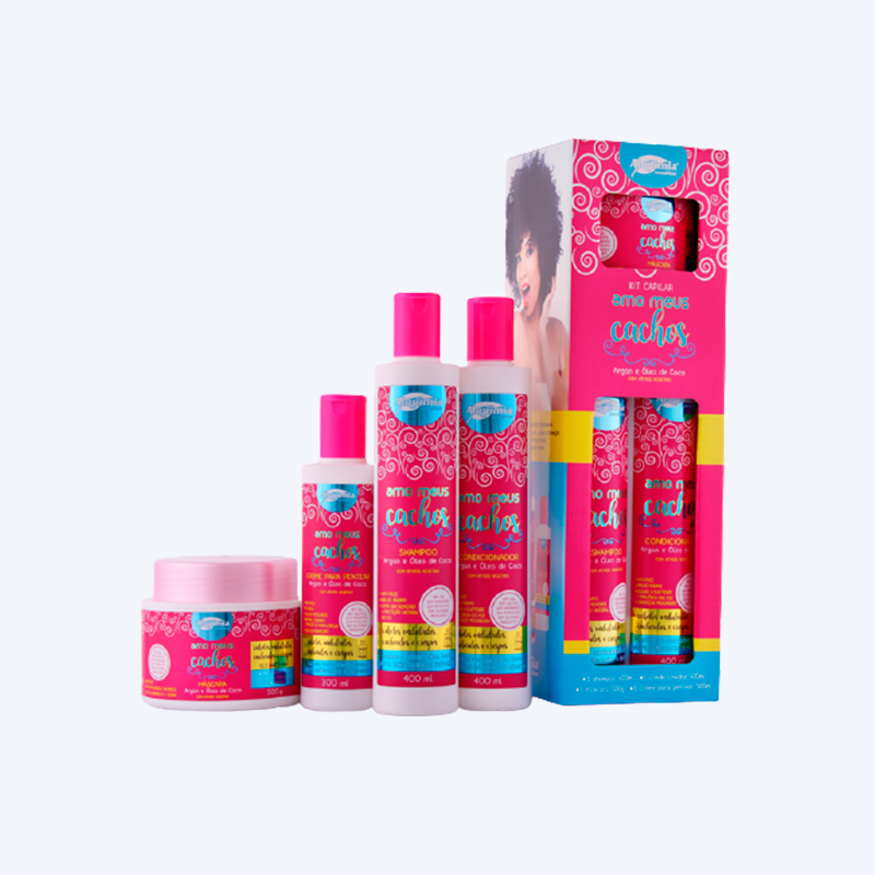 Kit Capilar Amo Meus Cachos Alquimia Cosméticos A Linha Amo Meus Cachos oferece os produtos dos sonhos para quem tem cabelos ondulados e cacheados, uma linha livre de sal, petrolato, parabenos e silicones insolúveis, deixando os fios leves, cheios de vida sob controle. Os ativos vegetais do óleo de argan e da queratina juntos, promovem efeito regenerativo e hidratam profundamente os fios. Kit com 4 itens: Shampoo Amo Meus Cachos Condicionador Amo Meus Cachos Creme para Pentear Amo Meus Cachos Máscara Restauradora Amo Meus Cachos