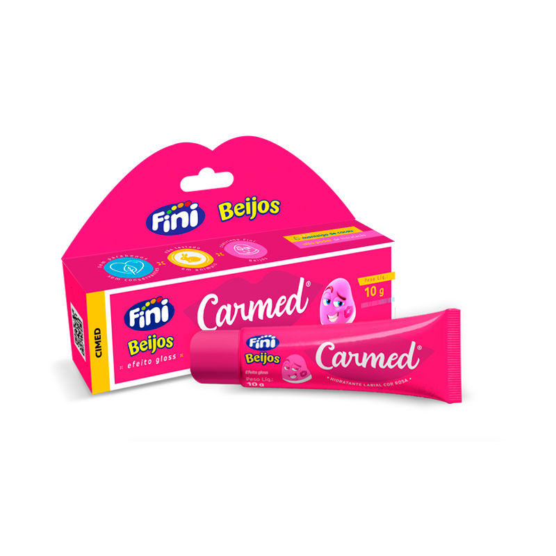Carmed Hidratante Labial Cheirinho Fini Beijos, com cor, de uso diário, com alto poder de hidratação, protege contra o ressecamento, deixando os lábios macios e saudáveis. Modo de usar: aplique sempre que necessário para manter os lábios macios e hidratados.