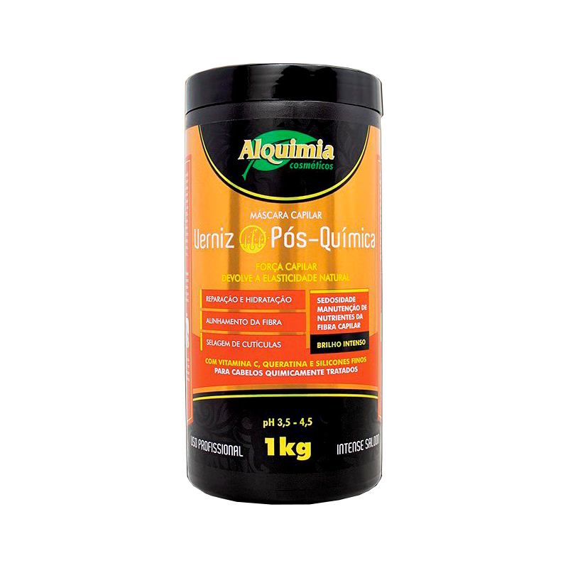 A Máscara Capilar Verniz Pós-Química Alquimia Cosméticos auxilia no tratamento após a realização de processos químicos tais como, relaxamento, alisamento e descoloração, isso ocorre devidos aos seu ativos vitamina c, queratina e silicones finos, que contribuem para o fortalecimento dos fios, previnem a quebra e promovem o fechamento das cutículas, deixando-os brilhosos, resistentes e nutridos.