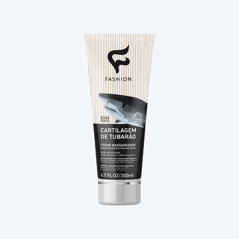 O massageador Cartilagem de Tubarão é um produto elaborado com cartilagem de tubarão (complexo proteico formado por proteínas e colágeno) e extrato de Arnica. Seu uso oferece absorção rápida e ação refrescante, proporcionando através da massagem, sensação de bem estar e conforto.