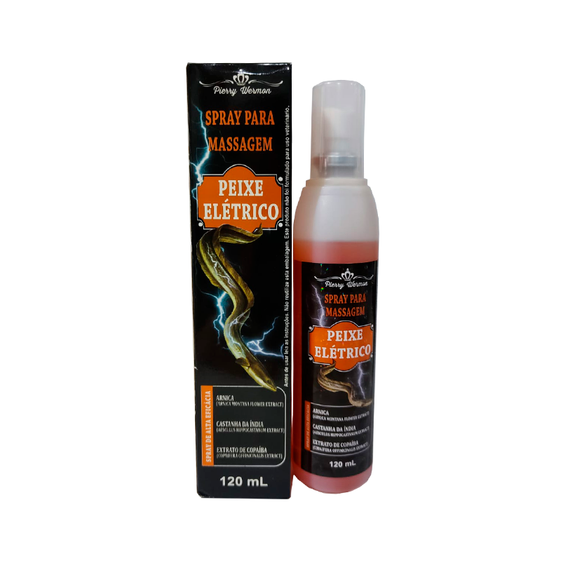 Spray para massagem peixe elétrico foi desenvolvido com ativos de plantas e extratos vegetais enriquecidos com ativos que agem proporcional alívio imediato no cansaço e dores musculares, eliminando o estresse do dia a dia. Assim lhe proporcionando uma agradável sensação de frescura conforto e bem-estar durante e depois da massagem. Indicado para ser utilizado em massagem práticas esportivas.